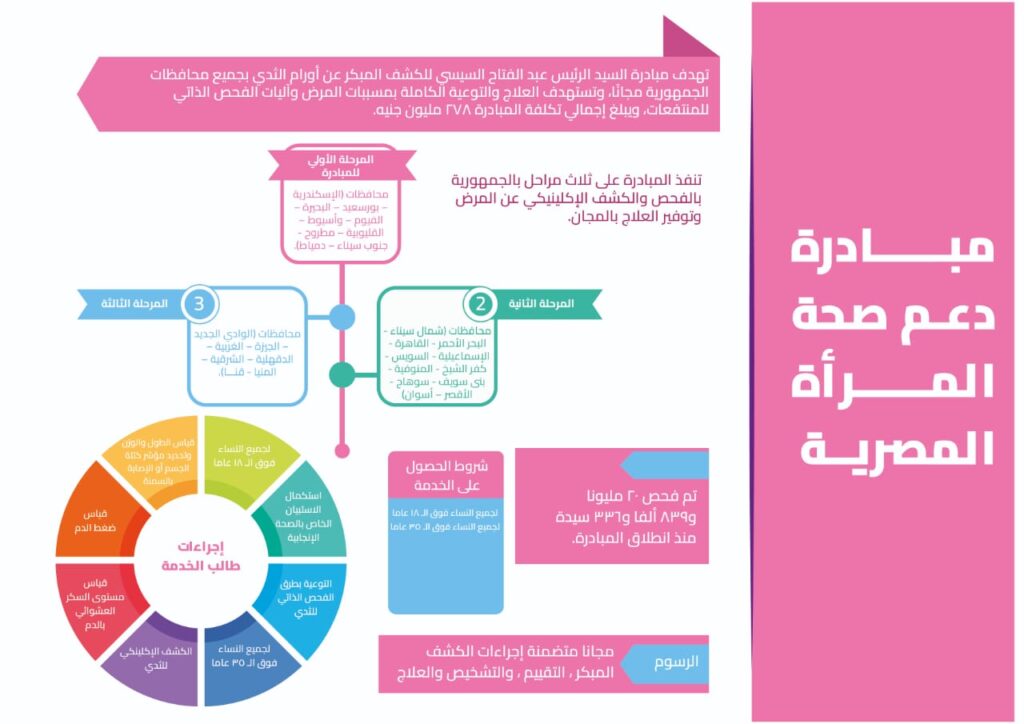 الكاملة بمسببات المرض وآليات الفحص الذاتي للمنتفعات، ويبلغ إجمالي تكلفة المبادرة ٢٧٨ مليون جنيه.