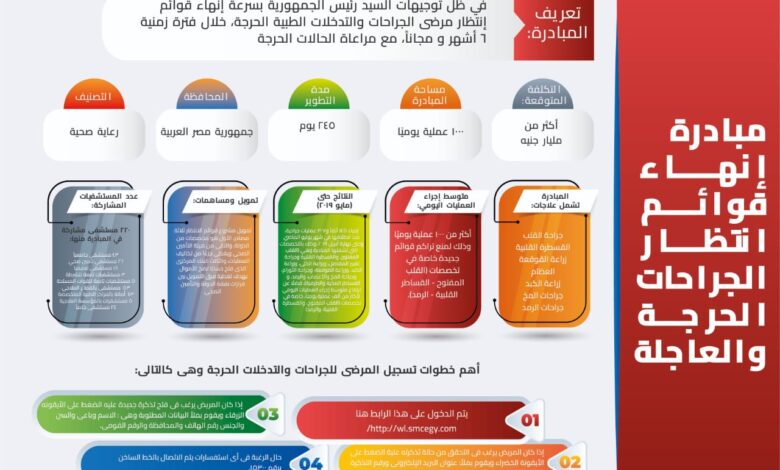أكمل القراءة »تصميم هبه عبد الفتاح التعريف المبادرة:في ظل توجيهات السيد رئيس الجمهورية بسرعة إنهاء قوائم إنتظار مرضى الجراحات والتدخلات الطبية…